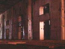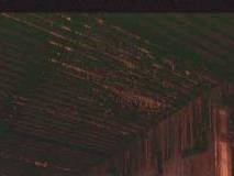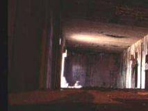 | Hier sieht man eine Takstraße in Bunker. Der helle Fleck am oberen Bildrand ist ein Bombentreffer. Es waren zwei 10 Tonnen schwere Bomben der Marke "Grand-Slam". Sie trafen die Bunkerdecke die noch nicht auf 7 m verstärkt war. Sie schlugen in die 4,5m dicke Bunkerdecke ca.2 m ein und Explodierten. Es reichte aber nicht aus um das Dach zu zerstörren. An eine Gefahr für den unter dem Bunker liegenden Luftschutzraum war nicht zu denken. |